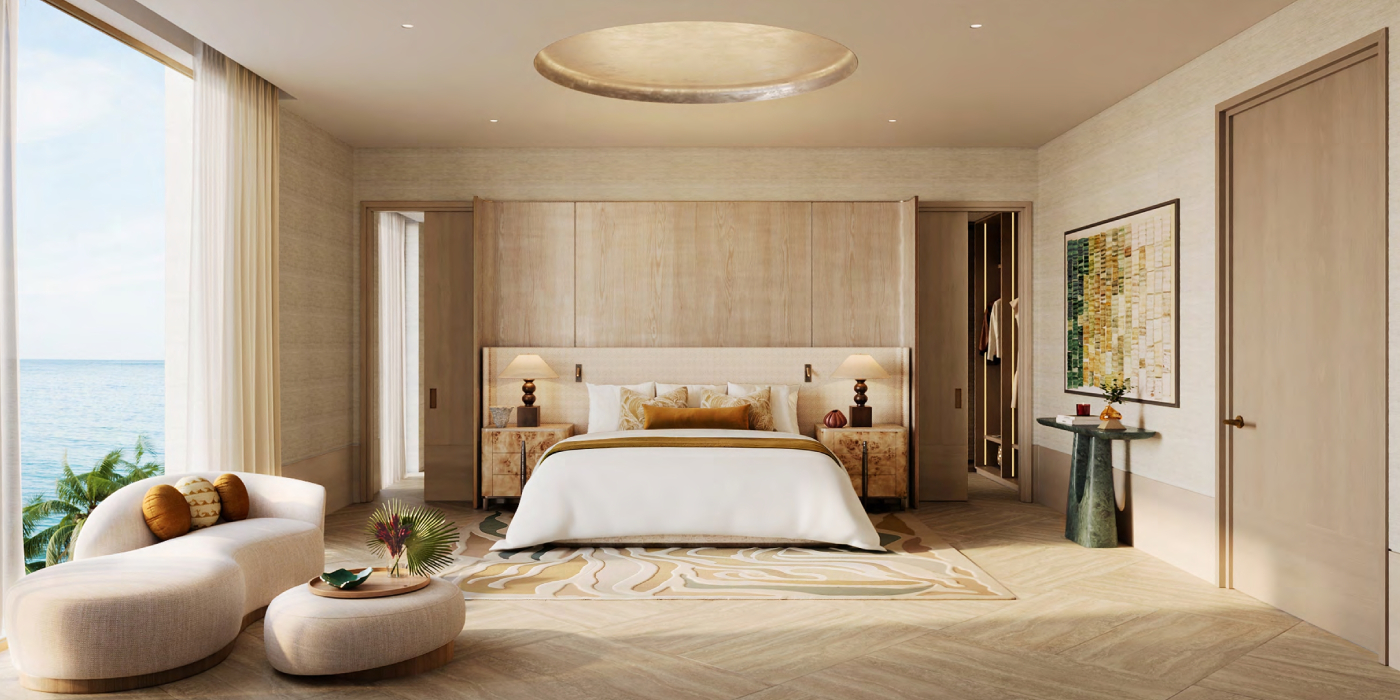 Bespoke duplexes and signature penthouses are also included in the development. Duplexes of up to 5,000 sq. ft. with four bedrooms are characterised by floor-to-ceiling glazing, outdoor rooms with views of nature, and panoramic views of the sea and city. Every structure ends in a penthouse with 4-meter-high ceiling, its own lobbies, its own lifts, and 360-degree views. These homes feature exclusive pools, movie rooms, fitness centers, spas, demonstration kitchens, entertainment suites and quarters, and are able to redefine the luxury of the beachfront in Dubai.